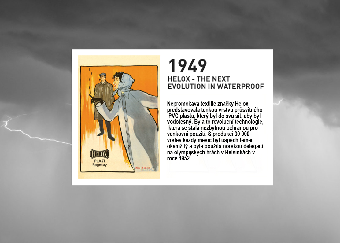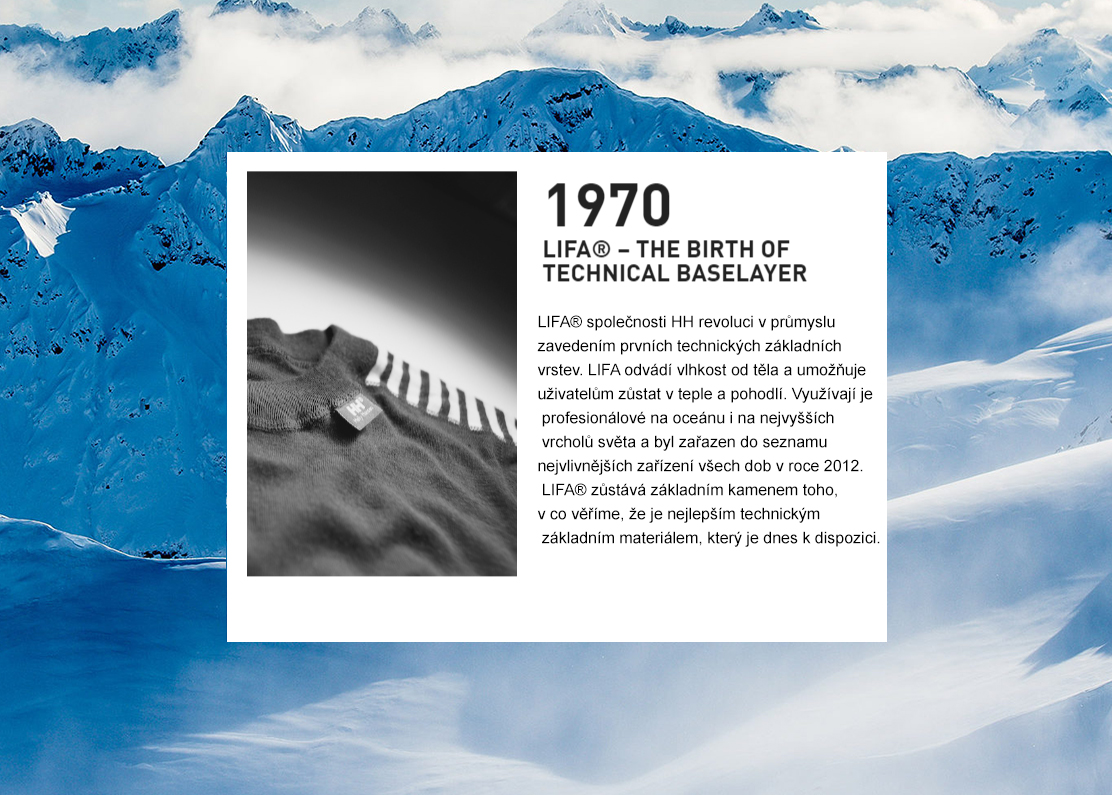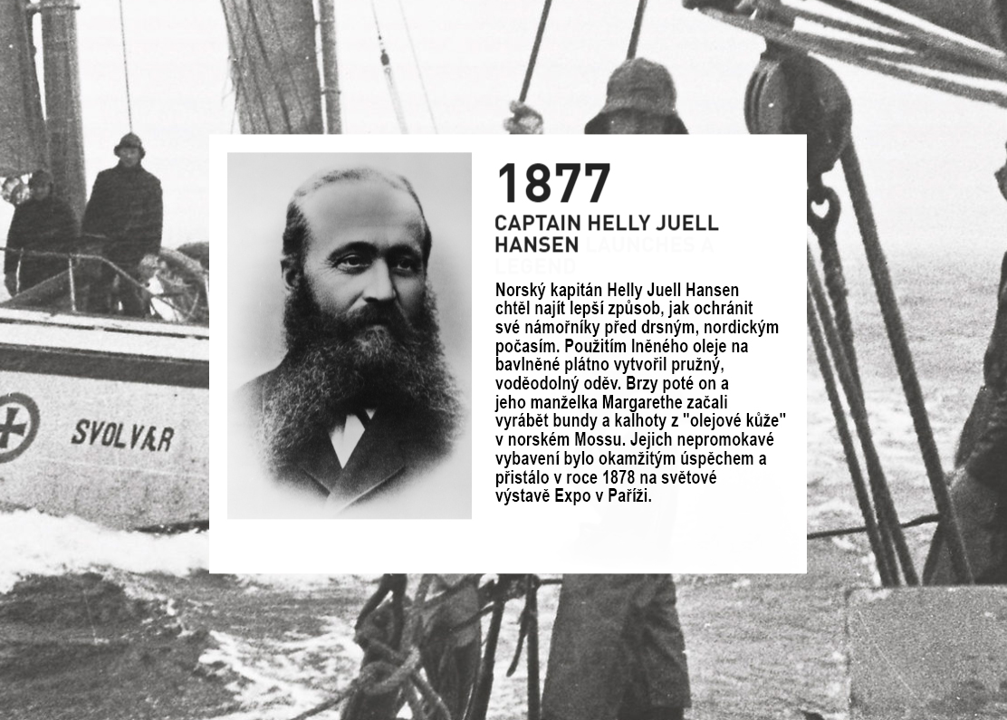 Není v tom žádný podraz ani klička: když si projedete historii firmy, uvidíte, že právě Helly Hansen® je technologický pilíř a tvůrce trendů. Už od samého počátku, v 19. století, se mořeplavec, kapitán Helly Juell Hansen, věnoval právě zejména výrobě oblečení s maximální odolností proti těm nejnáročnějším přírodním živlům, které se tedy tentokrát nevyskytovaly primárně v horách, ale na ledovém a větrném moři. Po více než 20 letech kontaktu s divokými živly na moři – začal se plavit, už když mu bylo 14 let – se v pětatřiceti se svou ženou Maren Margarethe pustil do výroby oděvů do extrémního počasí. Bavlněné kabáty, kalhoty či svetry byly napouštěny lněným olejem, aby odolávaly vodě i větru. A za prvních pět let prý prodali ohromných deset tisíc kusů těchto speciálních oděvů! Již v roce 1878 totiž získali ocenění na pařížském Expu, což jejich produktům otevřelo cestu do celého světa.